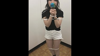 Japanese Slut Self-bondage And Shits Out Her Enema In Public