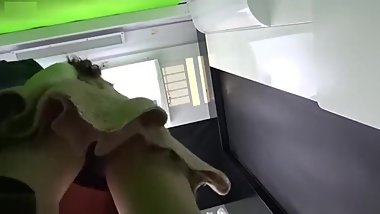 REAL Asian houseguest SPIED in bathroom getting dressed- resting bitch face