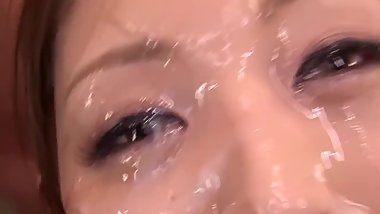 Cute Japanese Babe Gets Cum Covered - Japanese Bukkake Orgy