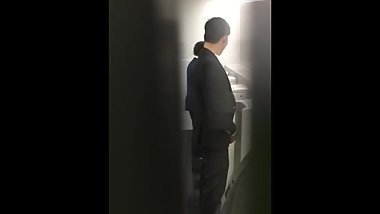 Horny Japanese teen's couple fuck on the stairs outdoors