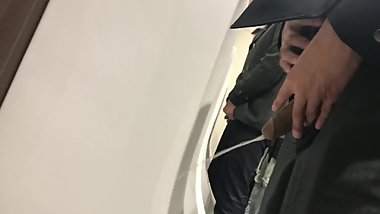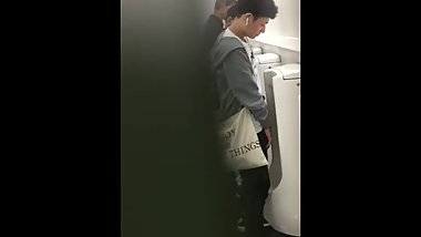 A Japanese schoogirl caresses a yankee boy's penis gently