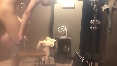 REAL Asian houseguest SPIED in bathroom getting dressed- resting bitch face