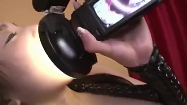 Japanese girl gives big tit webcam girl lap dance
