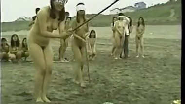 japanese nude girls splitting a watermelon with a stick while blindfolded