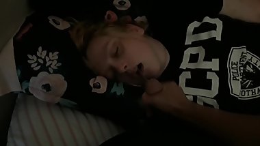 I came on her face while she is in bed (then she wakes up)