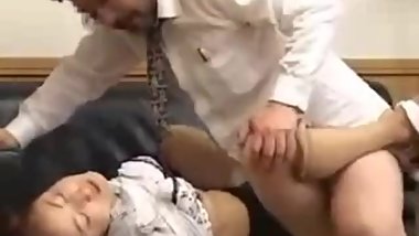 Japanese horny teacher sniffs & licks her student's foot, then sucks vagina