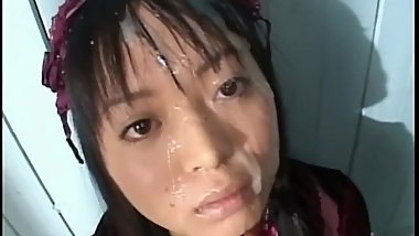 Japanese cosplay slut sucks dick and takes a fat load to the face