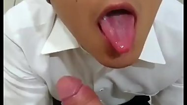 My Japanese girlfriend giving me a blowjob.