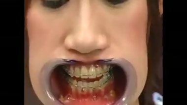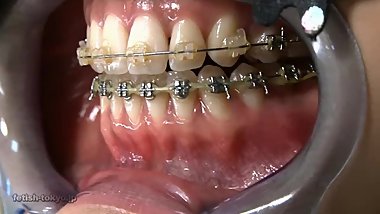 Japanese girl with braces and cheek retractors