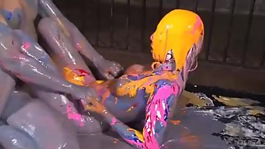 Japanese girl in silver paint gets fucked