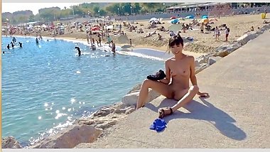 Public Dare - Hot Asian Put Double Headed Dildo All In Ass in Public!